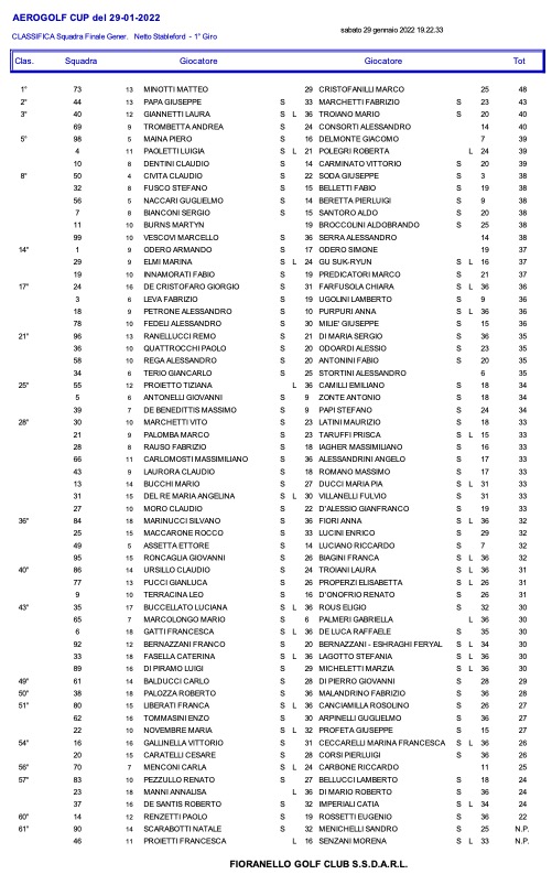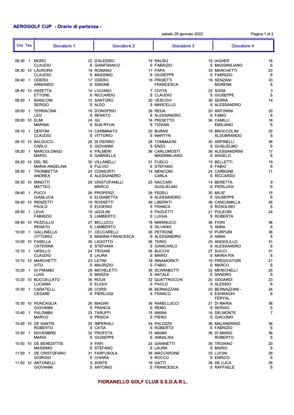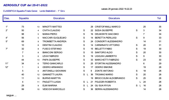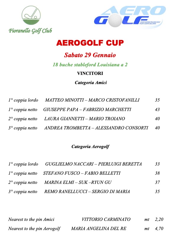 | GARA: AeroGolf Cup a Fioranello sabato 29 gennaio | B.A. = Battitore Avanzato |