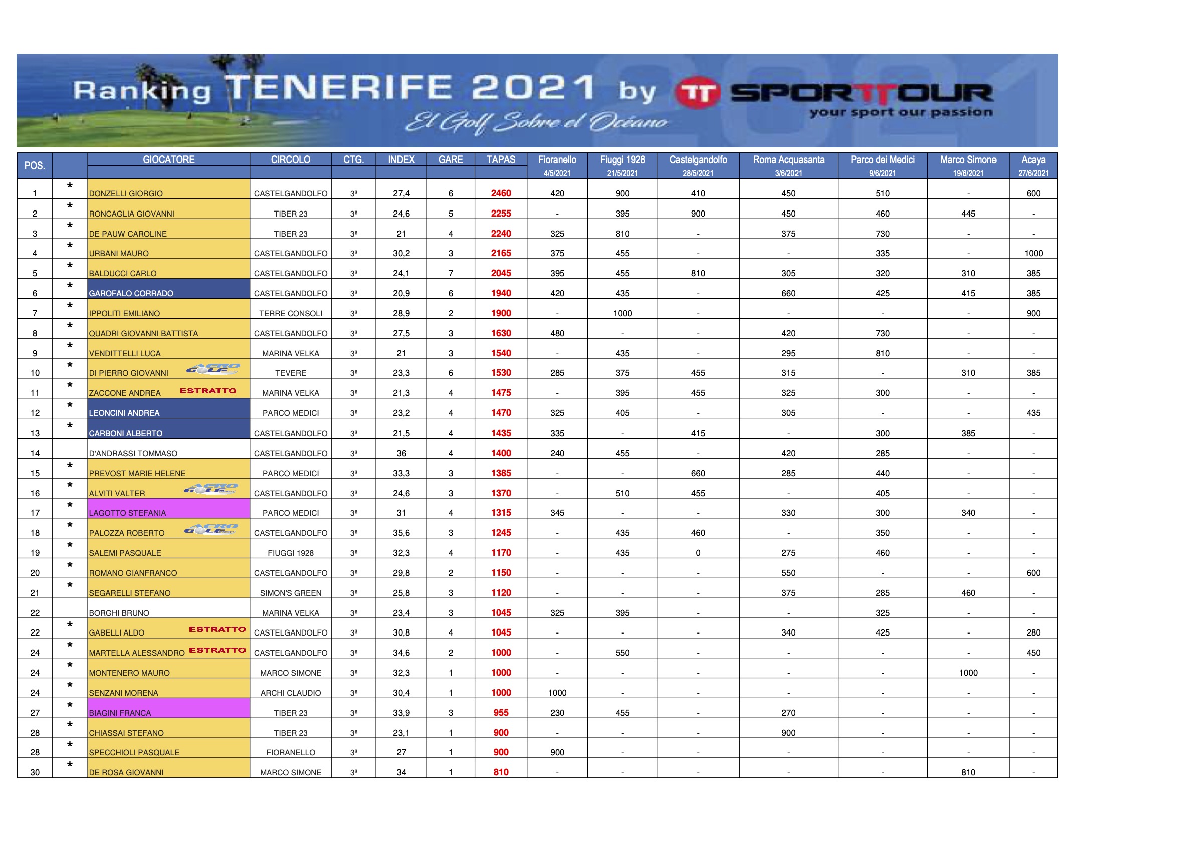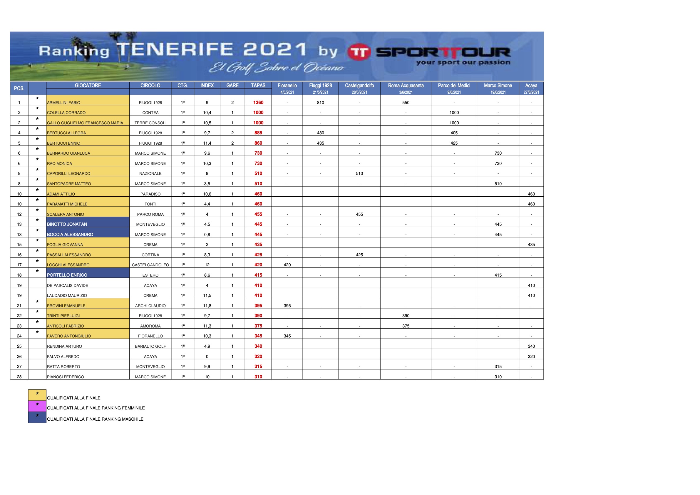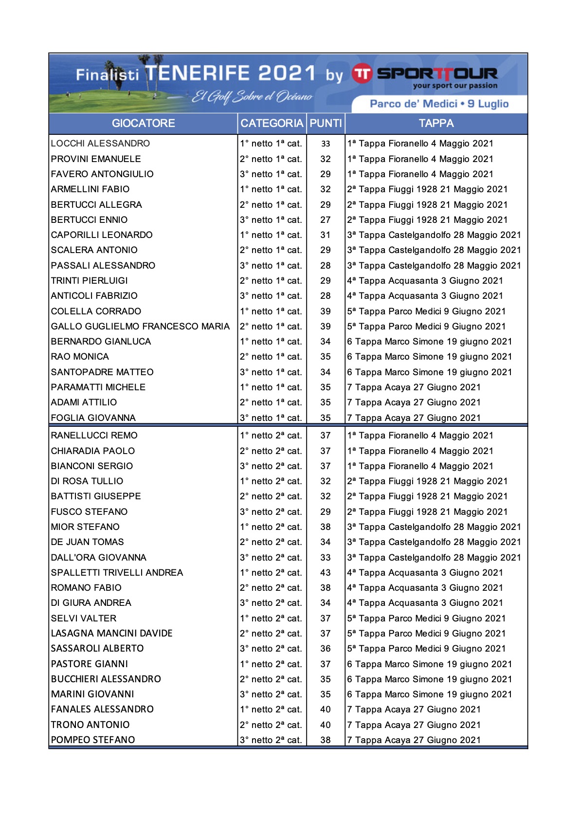 1^ categoria 2^ categoria 3^ categoria QUALIFICATI alla FINALE del 9 luglio 2021 al GOLF CLUB PARCO de’ MEDICI